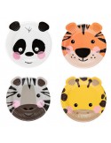 Zestaw zawiera balony z motywem pandy (2 szt.), tygrysa (2 szt.), żyrafy (2szt.) i zebry (2 szt.)