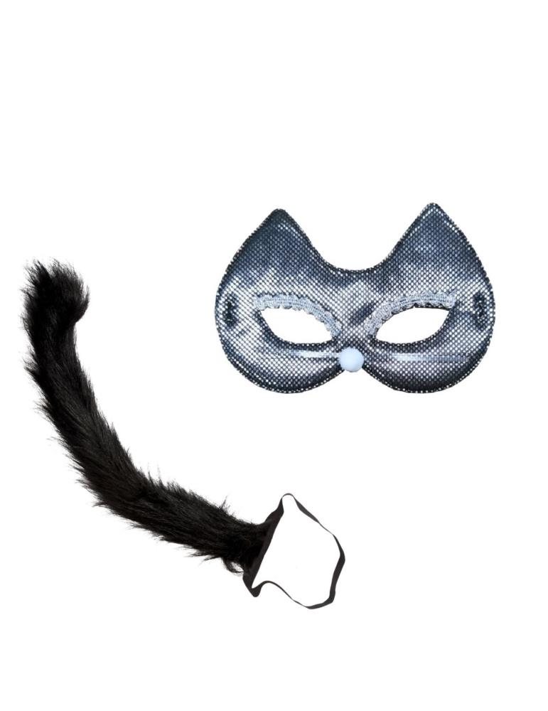 Zestaw Strój Kotek Maska Ogon ZES659 2el Czarno-Srebrna Kota Kot