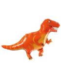 Balon foliowy w kształcie tyranozaura, idealny na urodziny dziecka w motywie dinozaurów.