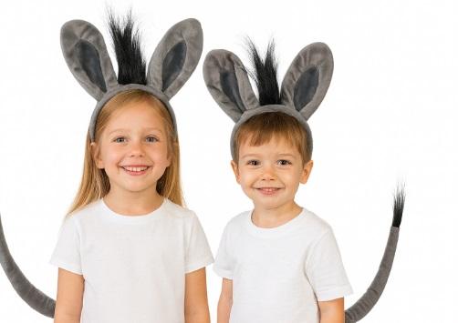 Zestaw kostiumowy Osiołek dla dzieci to idealny dodatek na bal przebierańców, przedstawienia szkolne, występy oraz kreatywną zabawę w domu. Komplet wykonany jest z miękkiego, przyjemnego w dotyku materiału, dzięki czemu doskonale sprawdzi się dla dziewczynki i chłopca, zapewniając komfort noszenia przez cały dzień.